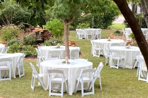 The Carriage House Event Center is the newest addition to the historic Sandstone Street Bed and Breakfast. It is located on the same property next to the bed and breakfast house. This renovated carriage house is the perfect venue for your intimate wedding, reception, baby or wedding shower, afternoon tea party, etc. The venue can seat 50 adults comfortably at round tables. The grounds are also available for additional seating and dancing for up to 100.